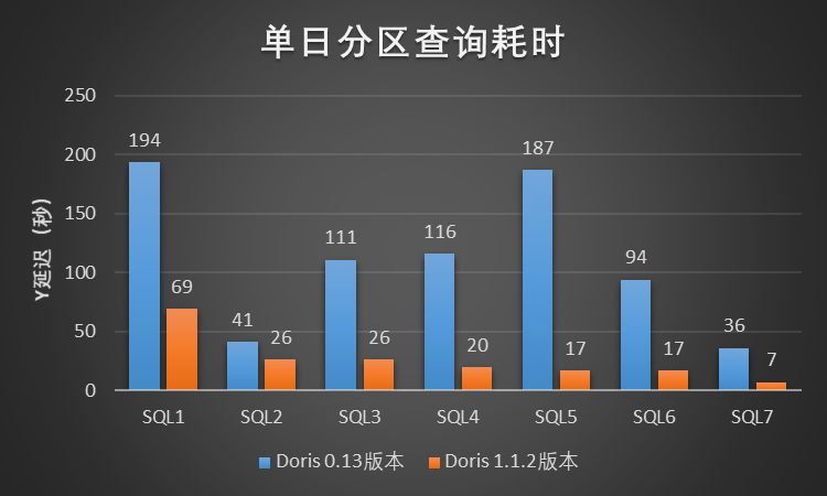 我们基于 Doris 1.1.2 版本搭建了一个和小米线上 Doris 0.13 版本在机器配置和机器规模上完全相同的测试集群,用于向量化版本上线前的验证。验证测试分为两个方面:单 SQL 串行查询测试和批量 SQL 并发查询测试。在这两种测试中,我们在保证两个集群数据完全相同的条件下,分别在 Doris 1.1.2 测试集群和小米线上 Doris 0.13 集群执行相同的查询 SQL 来做性能对比。我们的目标是,Doris 1.1.2 版本在小米线上 Doris 0.13 版本的基础上有 1 倍的查询性能提升。