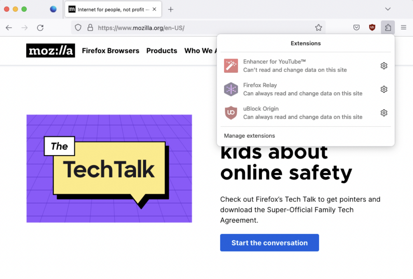 MV3 还会带来了一个用户界面上的变化,即新添加一个 Unified Extensions 按钮(已在 Firefox Nightly 上使用)。这可以让用户直接控制哪些扩展可以访问哪些特定的网站。