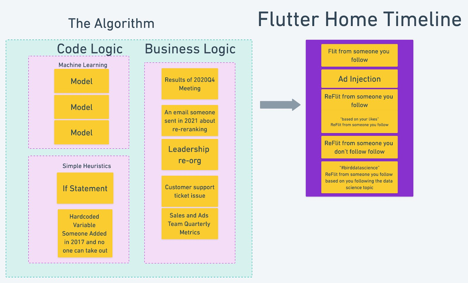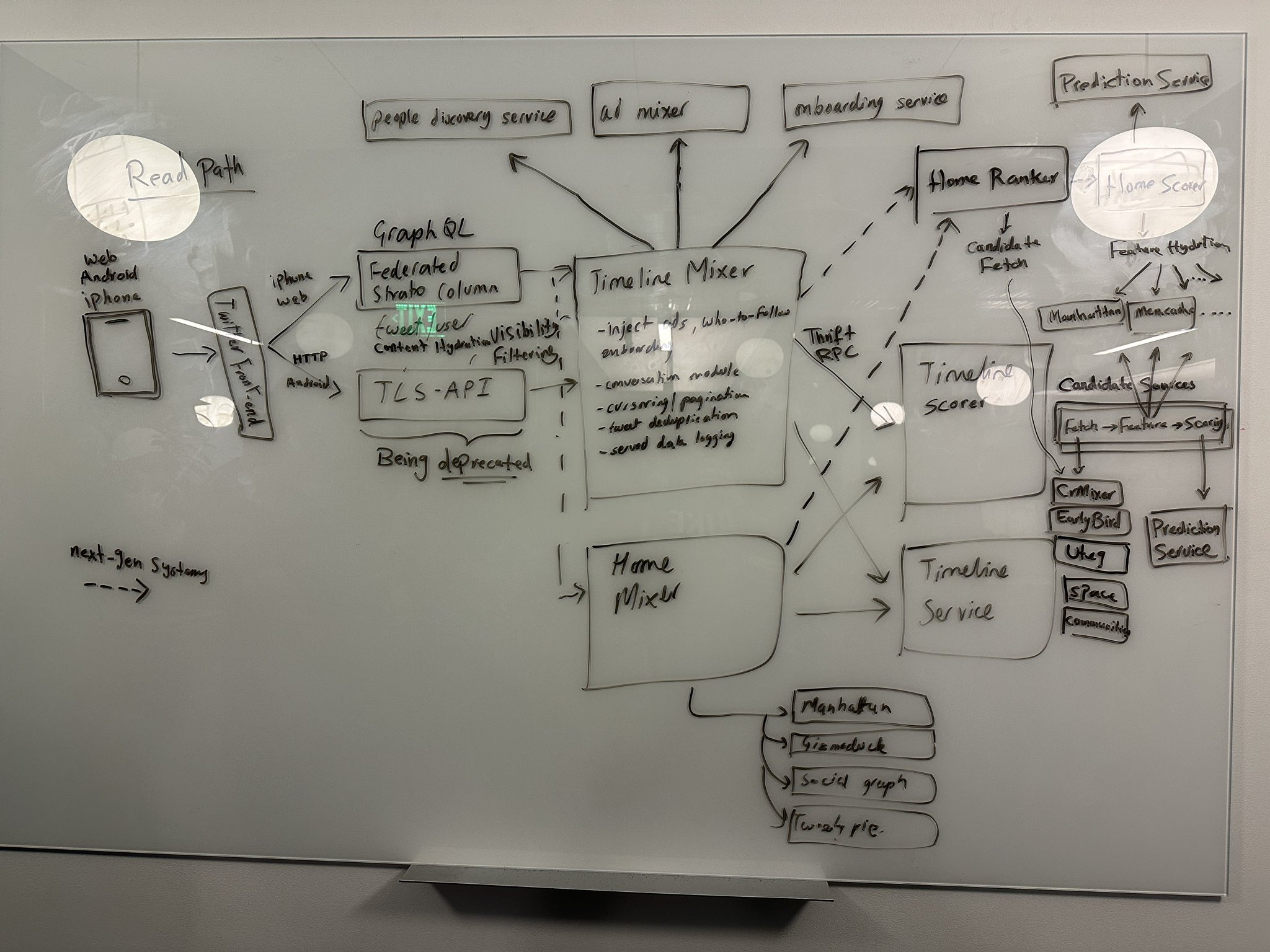 当然这不是 Twitter 的整体架构图,主要是展示了 Timeline 部分的架构,其中关键的组件是 Timeline Mixer,据称这是将任何特定的 Timeline 聚合在一起的通用服务器,Home Mixer 则从 Timeline Mixer 中获取内容,并专门将其传送到主页。