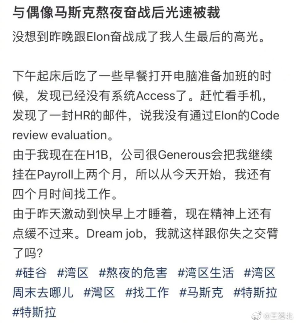 有网友表示自己在与马斯克进行 code review 的时候,得到了老板的优化提议,不过第二天却收到了被裁员的邮件(无法确认真实性,不知道是不是编的……)