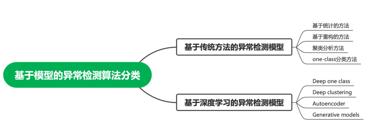基于模型的异常算法分类基于传统方法的异常检测模型和基于深度学习的异常检测模型两大类。