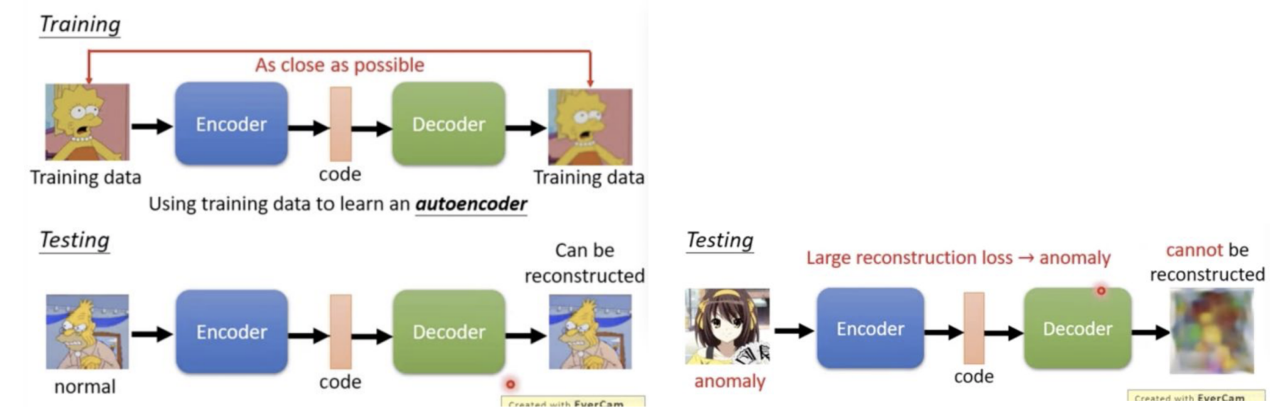 该类方法的优点是能够通过非线性方法捕捉复杂特征,试图找到正常实例的一种通用模式,缺点是如何选择正确的压缩程度,以及如何解决“过拟合”的问题(网络拟合的太好以至于异常实例也“潜伏”在低维特征空间中)。为了解决这个缺点,有研究者使用正则化或者记忆矩阵等等方法。