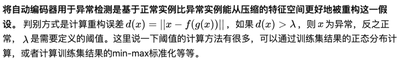 无监督异常检测算法在训练集中既有正常实例也可能存在异常实例,但假设数据的比例是正常实例远大于异常实例,模型训练过程中没有标签进行校正。此类技术的核心思想在于异常的情况相对于正常的情况而言是很少的,且其与正常情况存在较大的差异,这种差异可以体现在数据之间的距离远近、分布密度、偏离程度等方面。无监督异常检测算法仅根据数据的内在属性(如距离、密度等)检测数据的异常值,自编码器是所有无监督深度异常检测模型的核心。