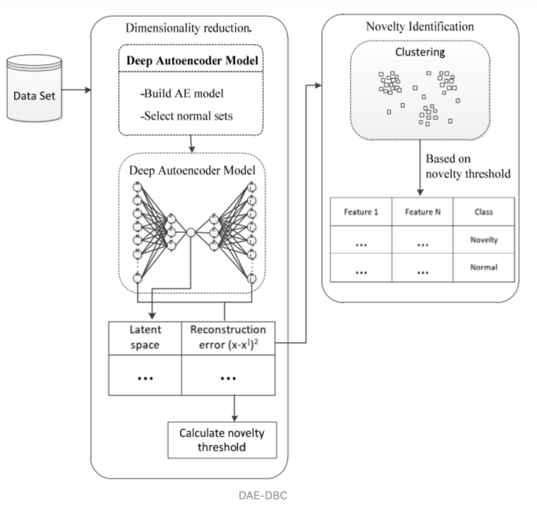 DAE-DBC:先利用autoencoder降维,然后通过聚类方法判别异常值。
