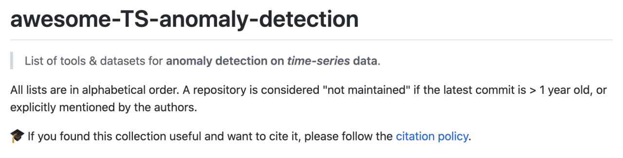 下方链接为常用的异常检测数据集,该git仓库中维护了多种通用的异常检测数据集。