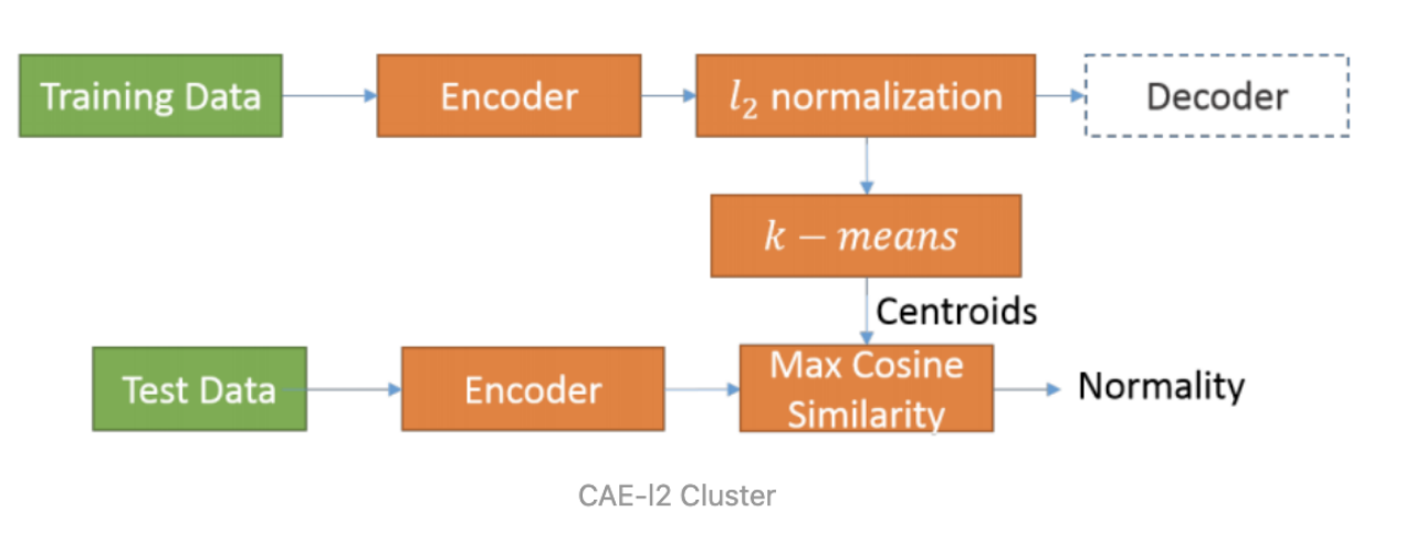 采用深度学习的聚类方法一般是用神经网络对输入数据进行编码,然后认为最后的编码序列可以代表神经网络的很多特征,然后我们对编码序列进行聚类就可以达成聚类的目的。该类方法被用于异常检测的包括:CAE-l2 cluster 、DAE-DBC。