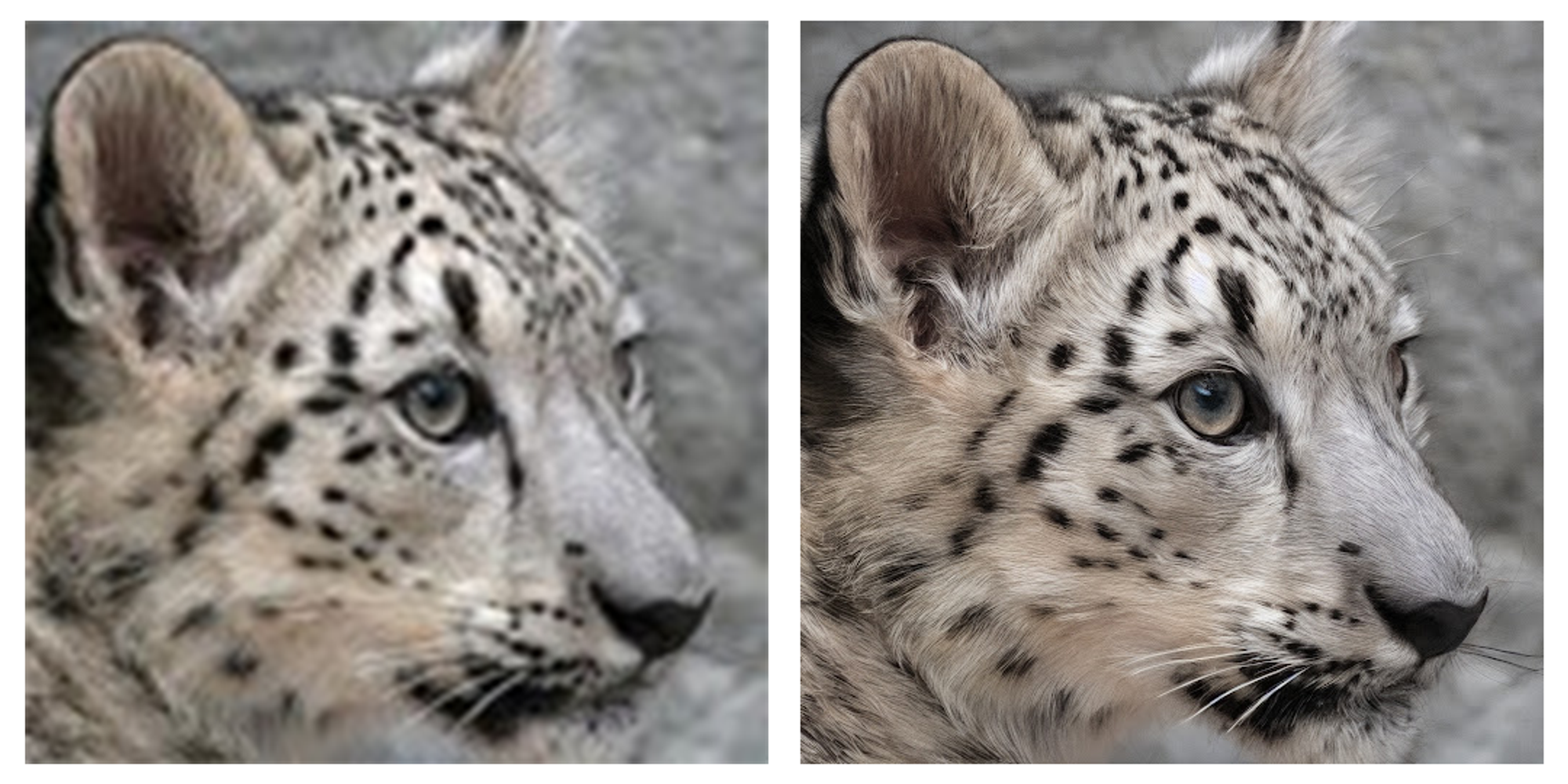Stable Diffusion 2.0 还包括一个 Upscaler Diffusion 模型,可以将图像的分辨率提高 4 倍。下面是该模型将一个低分辨率的图像(128x128)提升为高分辨率的图像(512x512)的例子。结合文本转图像模型,Stable Diffusion 2.0 现在可以生成分辨率为 2048x2048 甚至更高分辨率的图像。