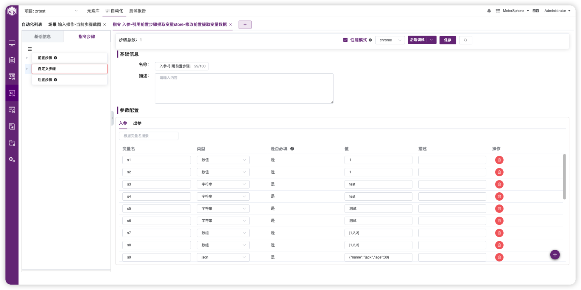 在UI测试模块,UI自动化针对指令步骤支持了参数化配置,用户可以通过输入参数(Input Parameters)的不同来自定义扩展指令,从而实现数据驱动测试的目标。