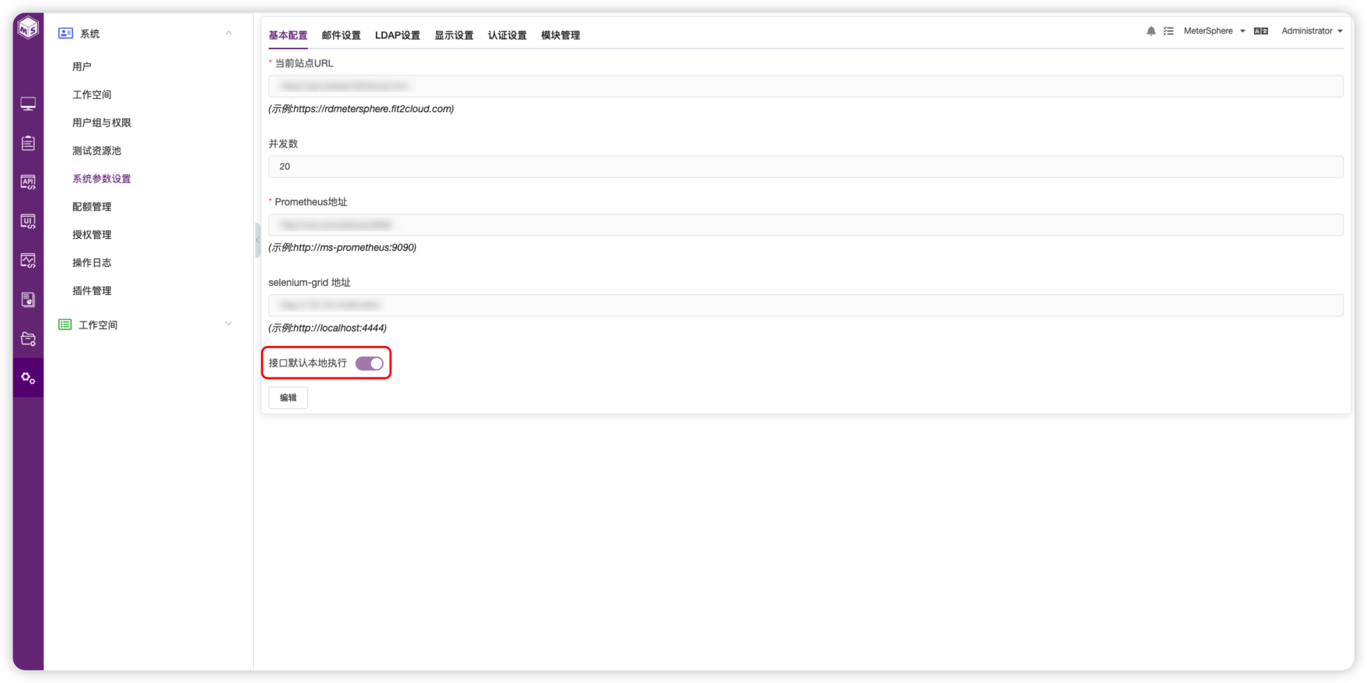 在这一版本中,MeterSphere在接口测试中新增了禁用本地执行的功能。禁用本地执行后,需要在选择“项目设置”→“应用管理”后配置接口执行的默认资源池,这样当接口调试或运行时就会在指定的资源池上运行,以规避因为用例设计不当(例如死循环、恶意脚本)导致整个服务挂掉的情况。