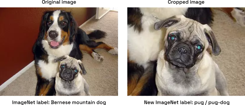 此外,更强的数据增强可能会导致图片不符合其真实标签,例如当裁剪出的图像块没有包含原图标签所指物体(图6)。为了缓解这个问题,可以使用一个不仅基于真实标签,而且基于teacher模型所预测标签的损失。此外,一些图像的分类标签可能不够明确,因为尽管图像可能包含多种物体,但每张图像只关联一个标签。