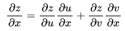 ∂z/∂x = ∂z/∂g * ∂g/∂f * ∂f/∂x
