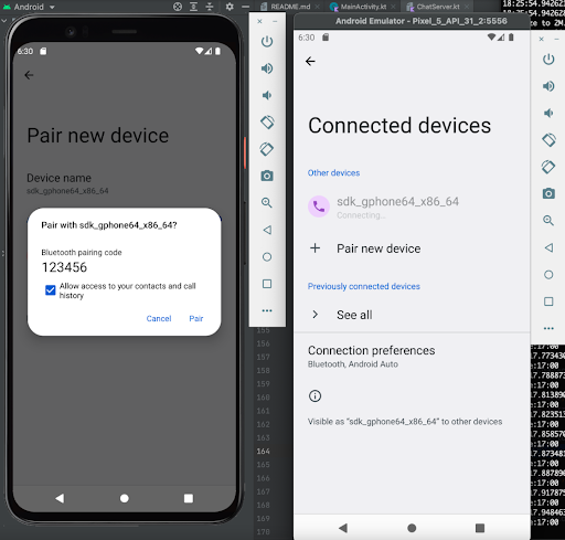 开发者现在可以使用虚拟蓝牙发现并连接两个手机模拟器。使用虚拟蓝牙,开发者可以测试应用程序是否能够以可扩展的方式识别和访问蓝牙适配器。此功能在 Android Emulator 31.3.8 及更高版本的系统镜像 T (API 33) 上可用。官方计划在未来为创建示例虚拟外围设备(例如信标和心率监视器)和集成测试蓝牙功能添加更多支持。
