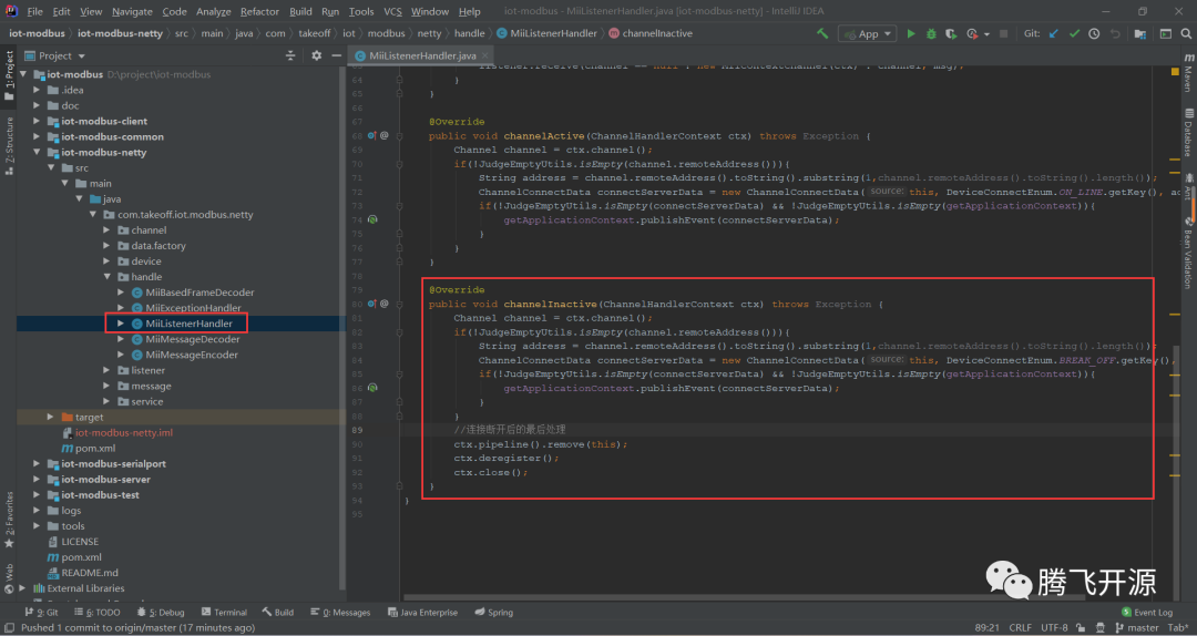 主要是在MiiListenerHandler重写了channelInactive方法。