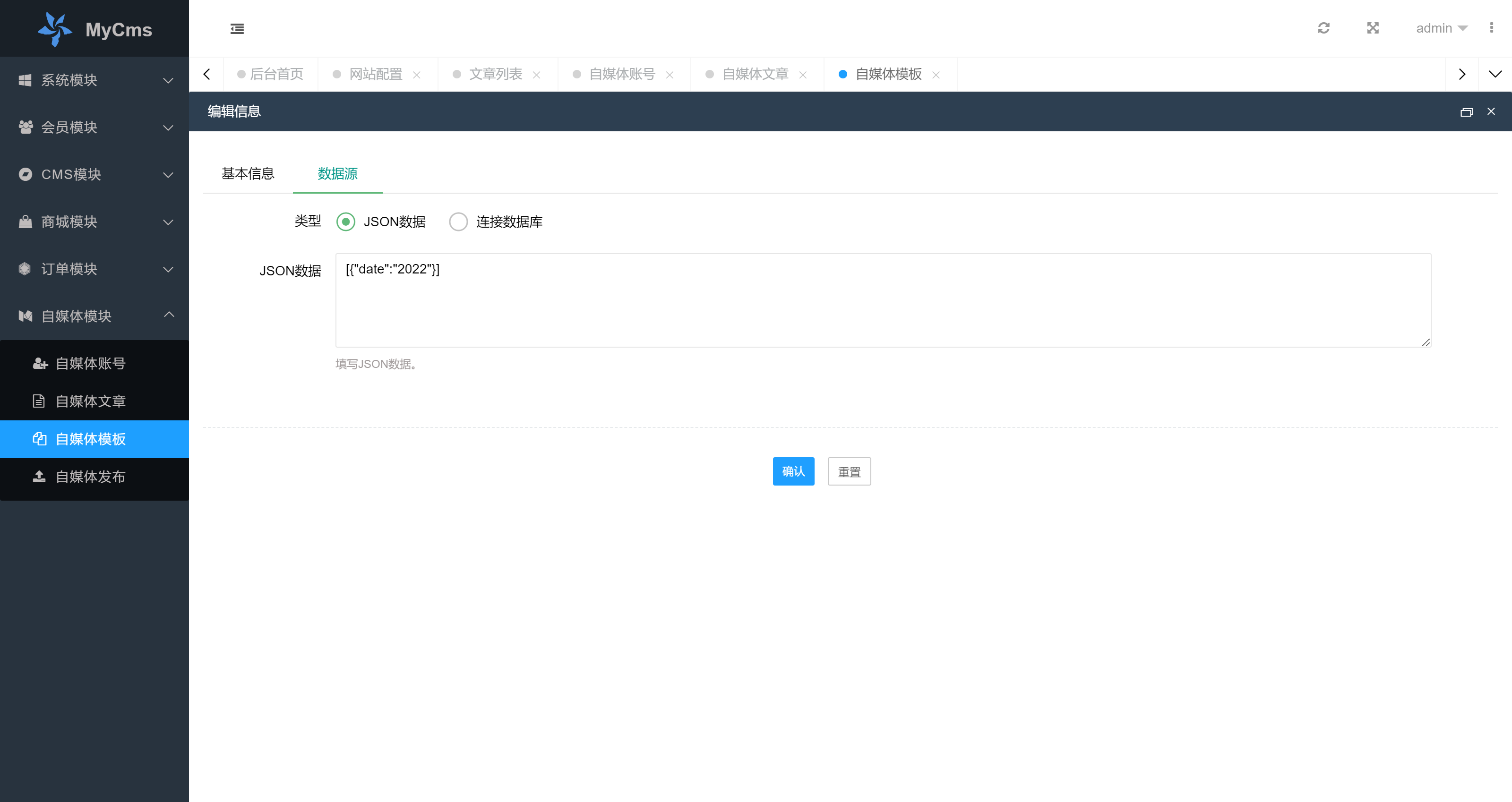 通过模板生成文章,目前支持两种方式,一是通过 json 内容来进行生成,其次就是通过读取数据表来生成文章,以JSON 数据生成文章为例,简单说明一下使用方法。