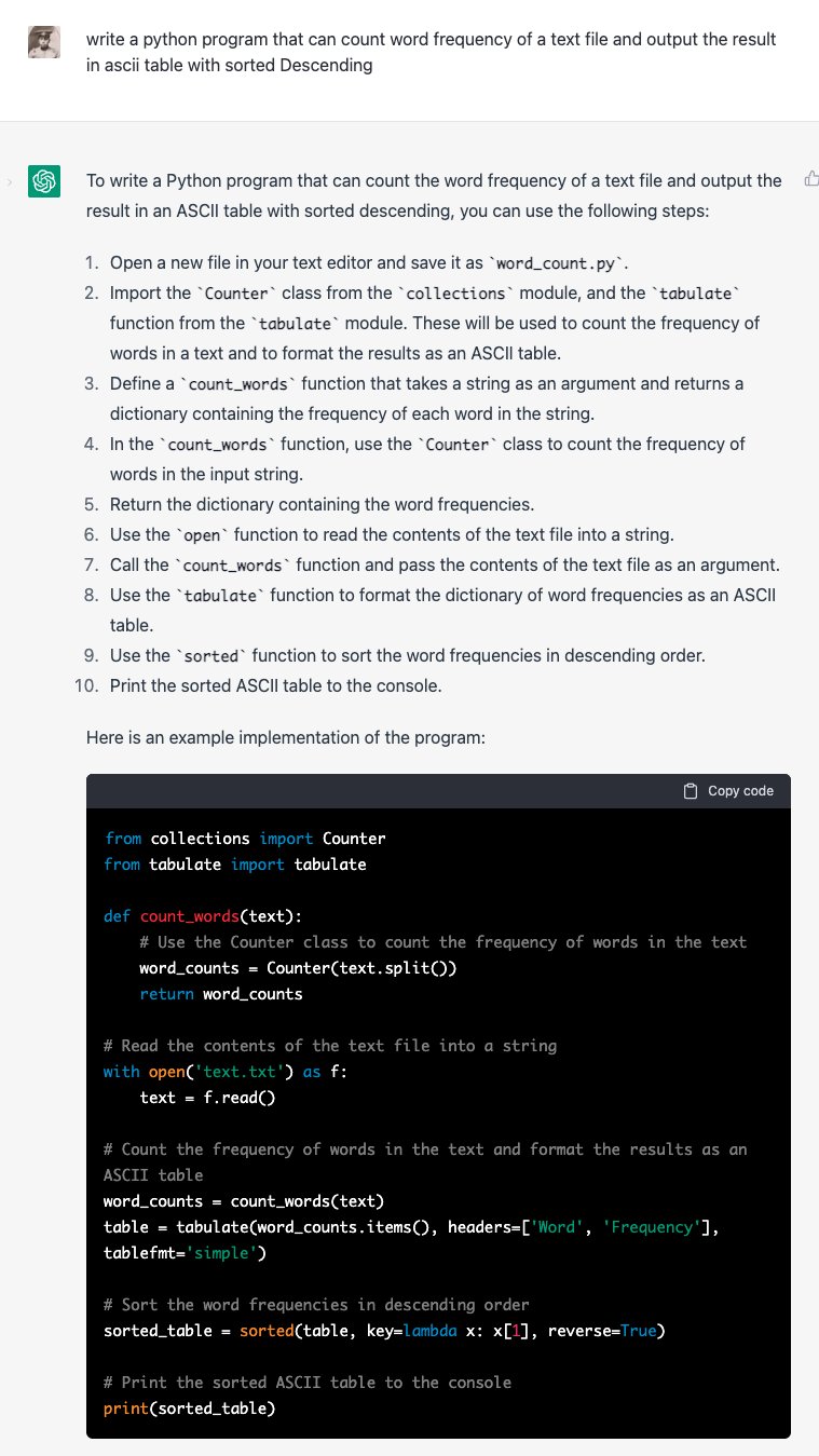 这几天许多用户都展示了与 ChatGPT 对话的有趣内容,它宛如化身为地球“最强懂哥”,各种问题轻松应答,让它解答防疫政策与经济发展的关系,给出的答案不仅条理清晰,还会引用例子支撑观点。让它帮忙写程序,不仅提供了可用的代码,更是把实现思路也一并写了出来。