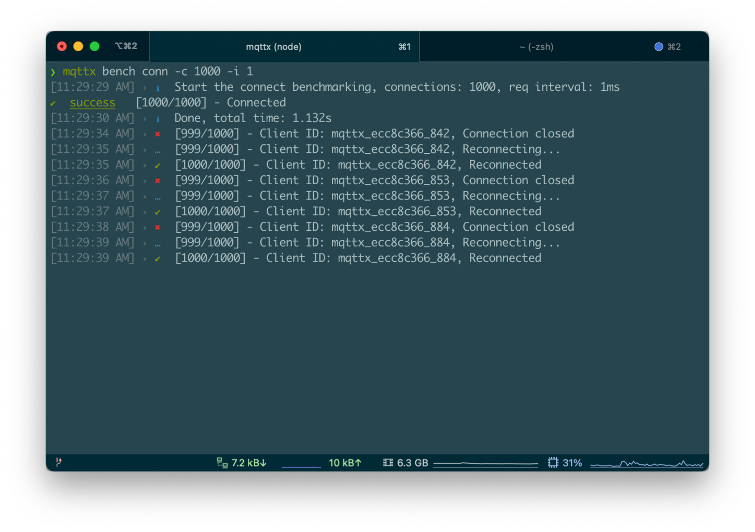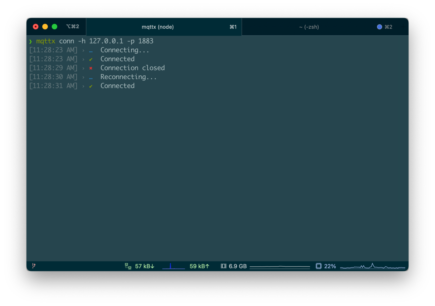 在之前的版本中,当 MQTT 服务器出现异常时,MQTT X CLI 命令行客户端会自动断开连接并退出,这样会导致用户无法在 MQTT 服务器恢复后继续使用 MQTT X CLI,需要重新手动连接。因此,我们在该版本中新增了自动重连的功能,当 MQTT 服务器出现异常后,MQTT X CLI 命令行客户端断开连接后会自动重连。