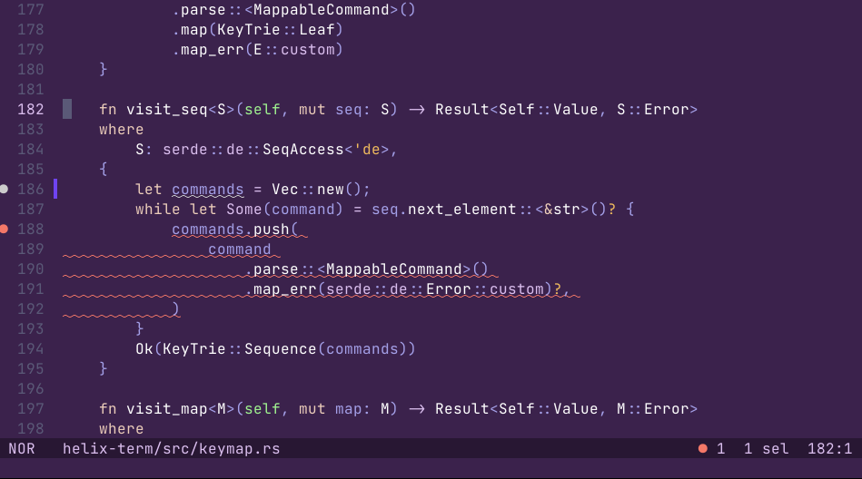 - LSP 代码路径中的故障处理已得到改进, Helix 现在可以优雅地处理语言服务器不支持功能和语言服务器意外崩溃等情况。