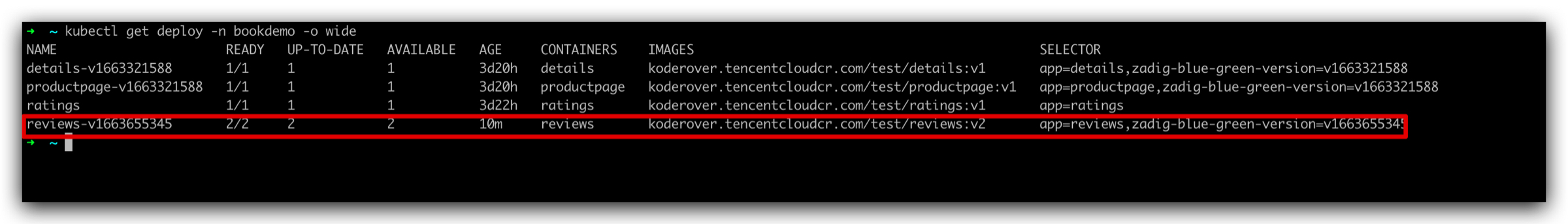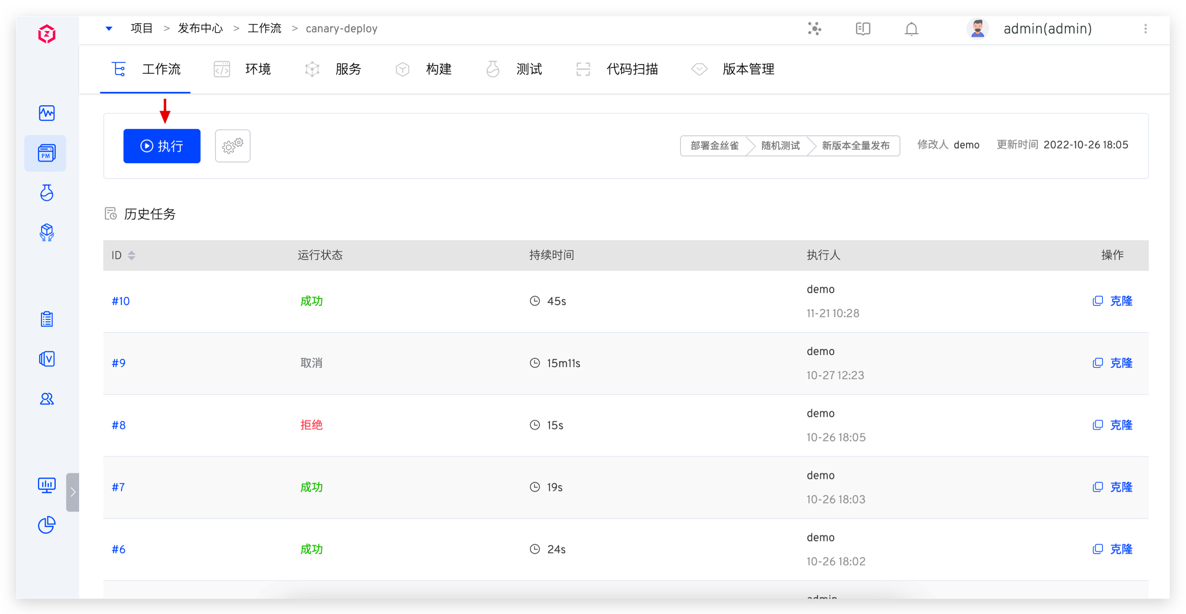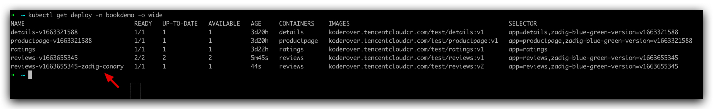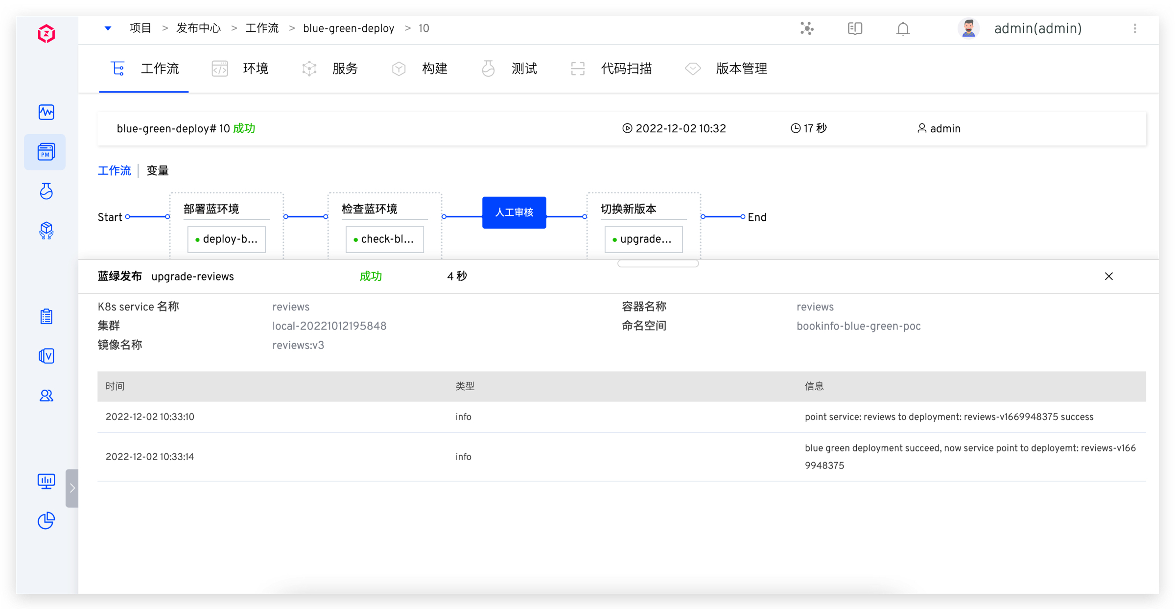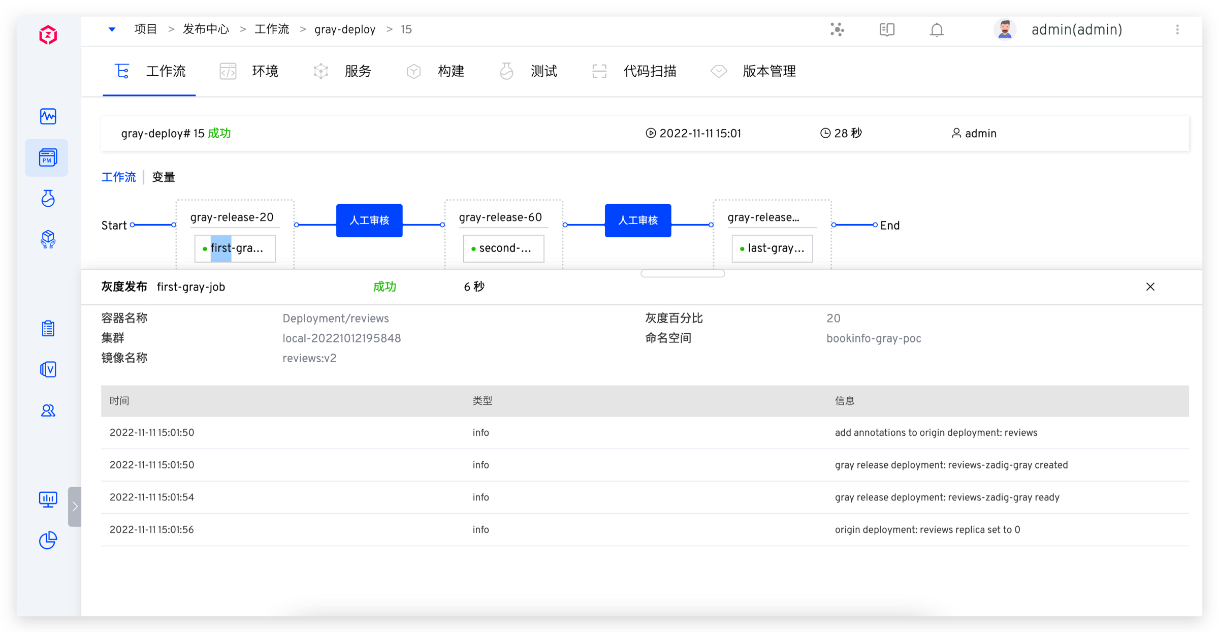 3. 人工审核通过并完成金丝雀发布。此时环境已更新为金丝雀版本,如下图所示。