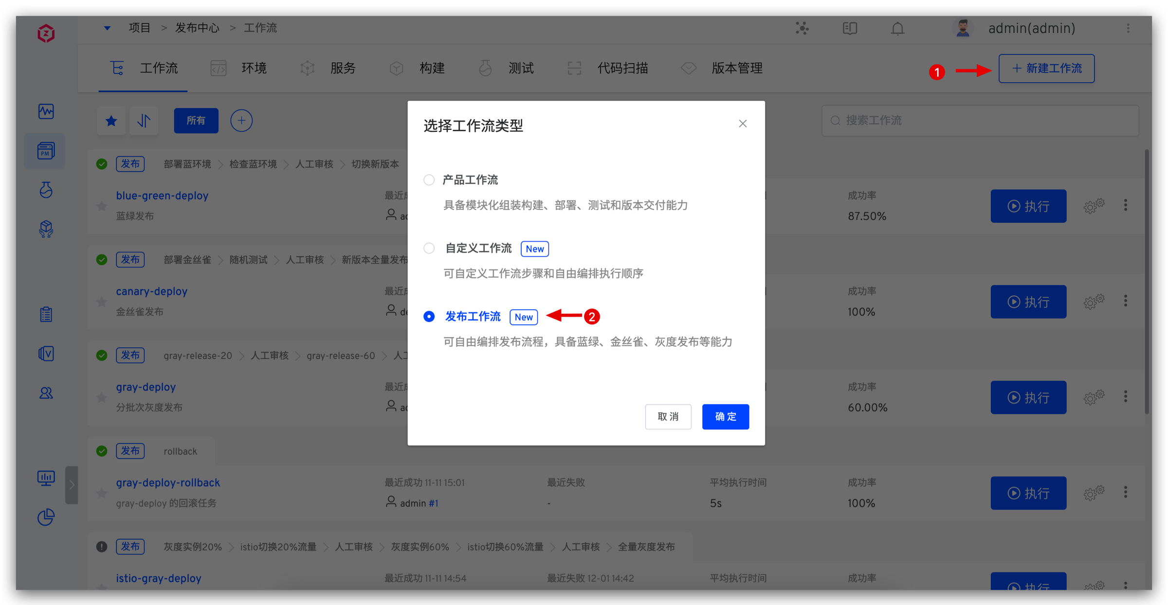 1. 新建工作流。访问 工作流 -> 新建工作流 -> 选择 发布工作流 。