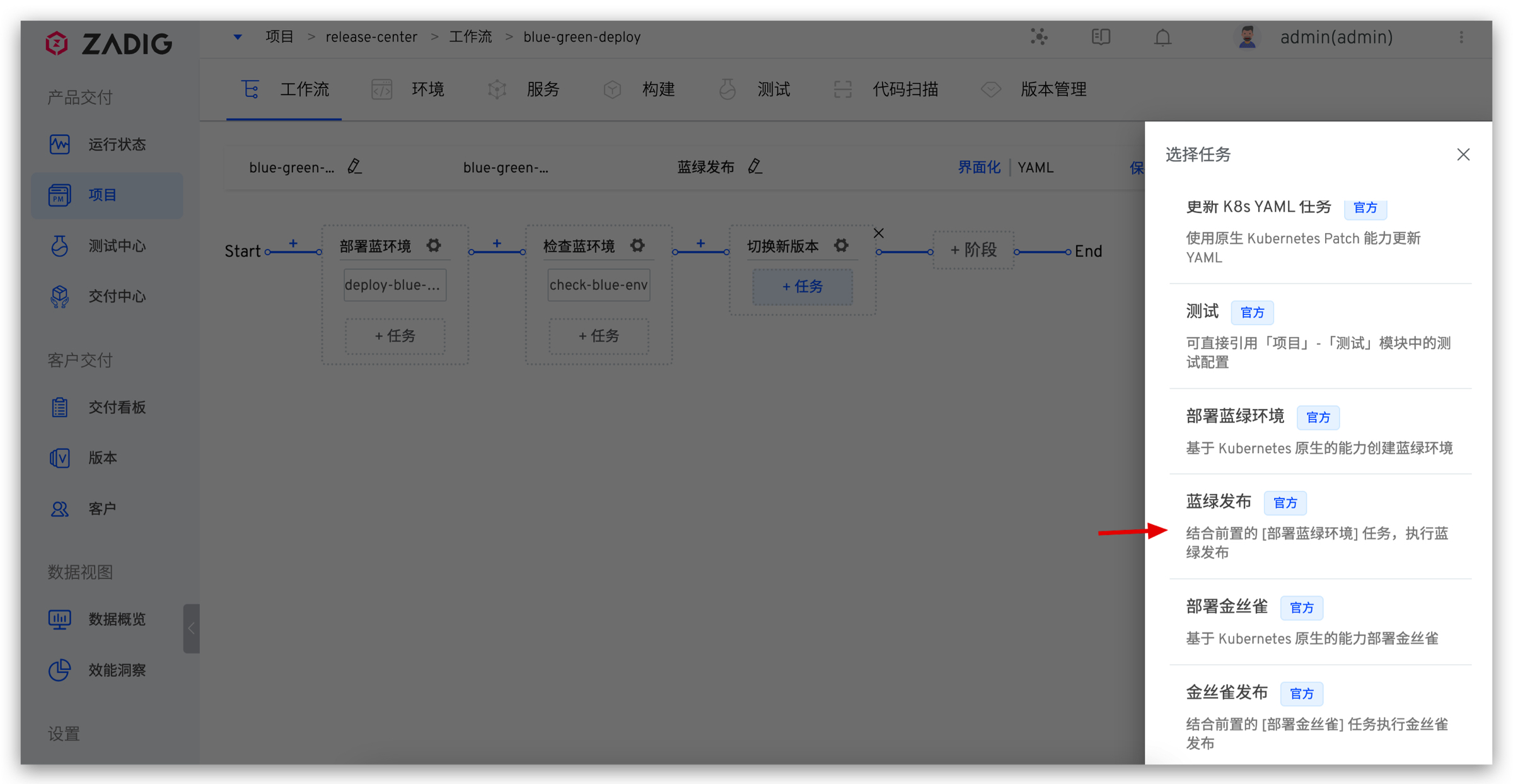 Zadig 企业版推出蓝绿发布、金丝雀发布、分批次灰度等发布任务,下面主要介绍在 Zadig 上如何使用这几个发布任务。