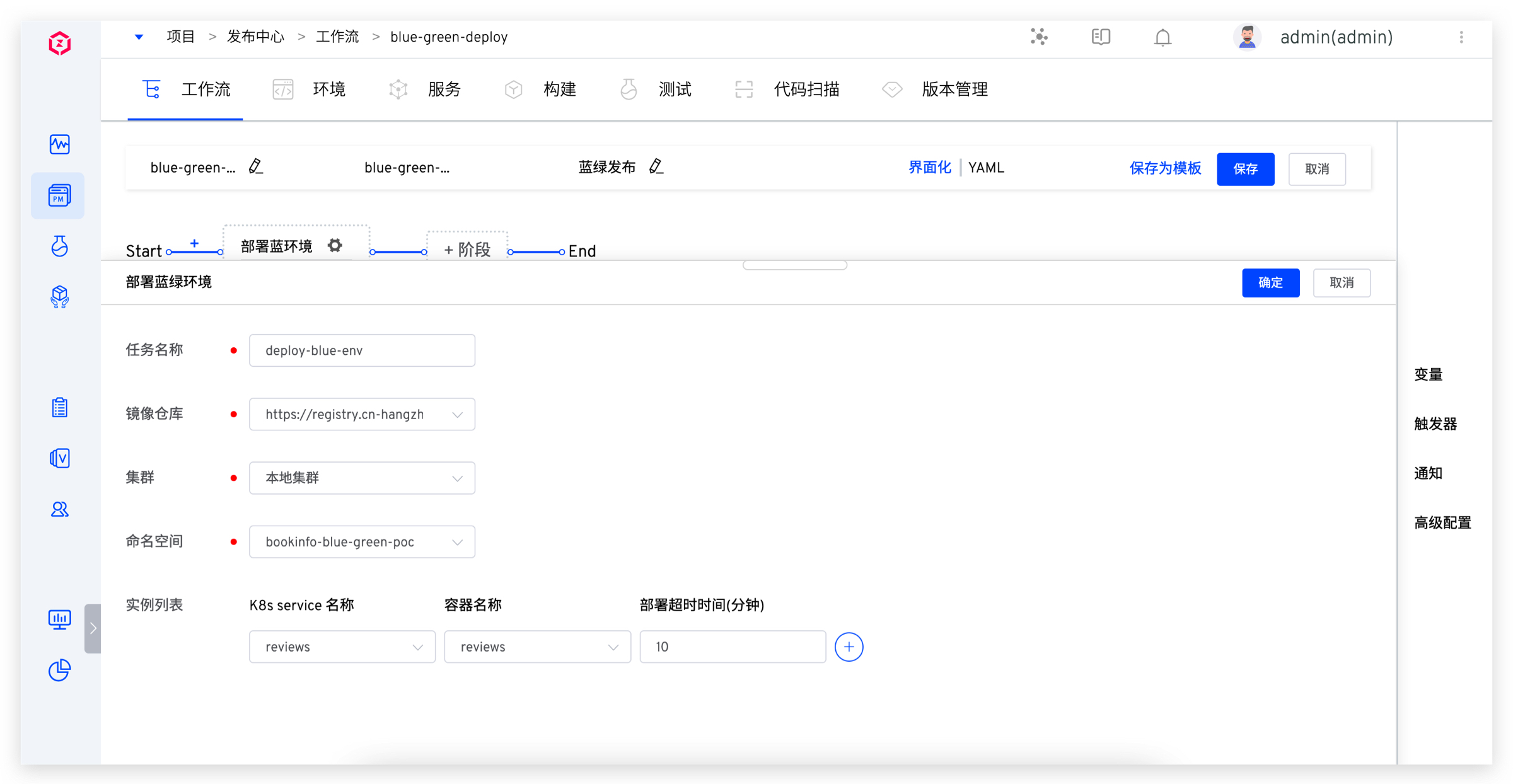 配置蓝绿发布