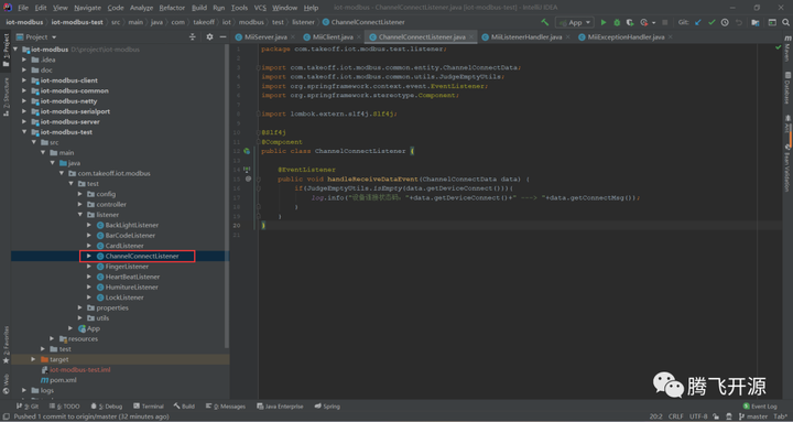 package com.takeoff.iot.modbus.test.listener; import com.takeoff.iot.modbus.common.entity.ChannelConnectData; import com.takeoff.iot.modbus.common.utils.JudgeEmptyUtils; import org.springframework.context.event.EventListener; import org.springframework.stereotype.Component; import lombok.extern.slf4j.Slf4j; @Slf4j @Component public class ChannelConnectListener { @EventListener public void handleReceiveDataEvent(ChannelConnectData data) { if(JudgeEmptyUtils.isEmpty(data.getDeviceConnect())){ log.info("设备连接状态码:"+data.getDeviceConnect()+" ---> "+data.getConnectMsg()); } } }