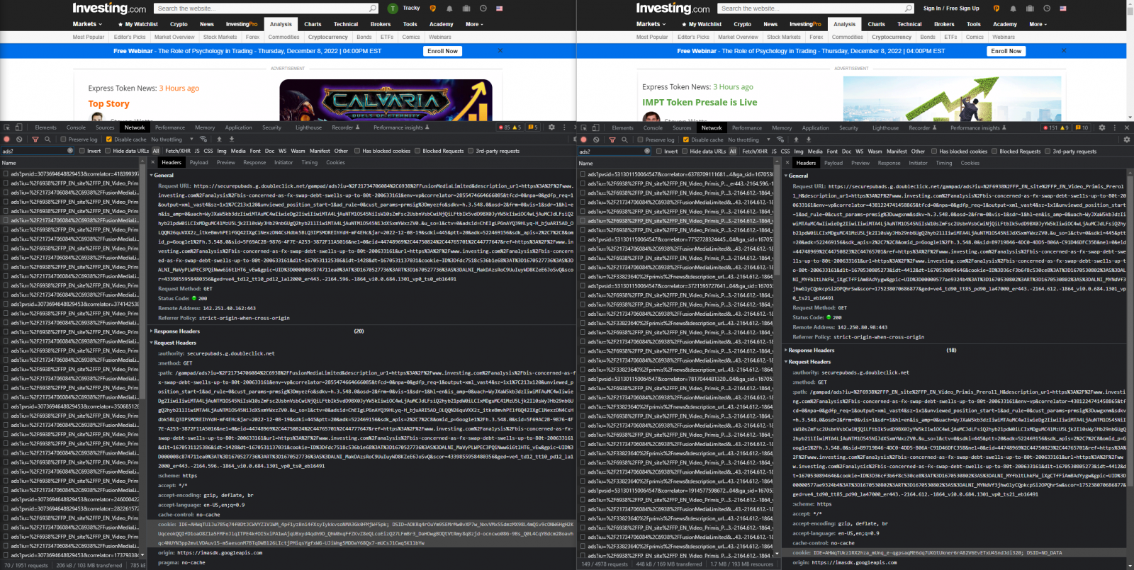 该测试显示:当使用 Google 登录时,Google 正在收集网站上的数据。例如,在 investing.com 上,许多请求都发送到 https://securepubads.g.doubleclick.net/gampad/ads ?,包括请求参数中的完整页面 url。