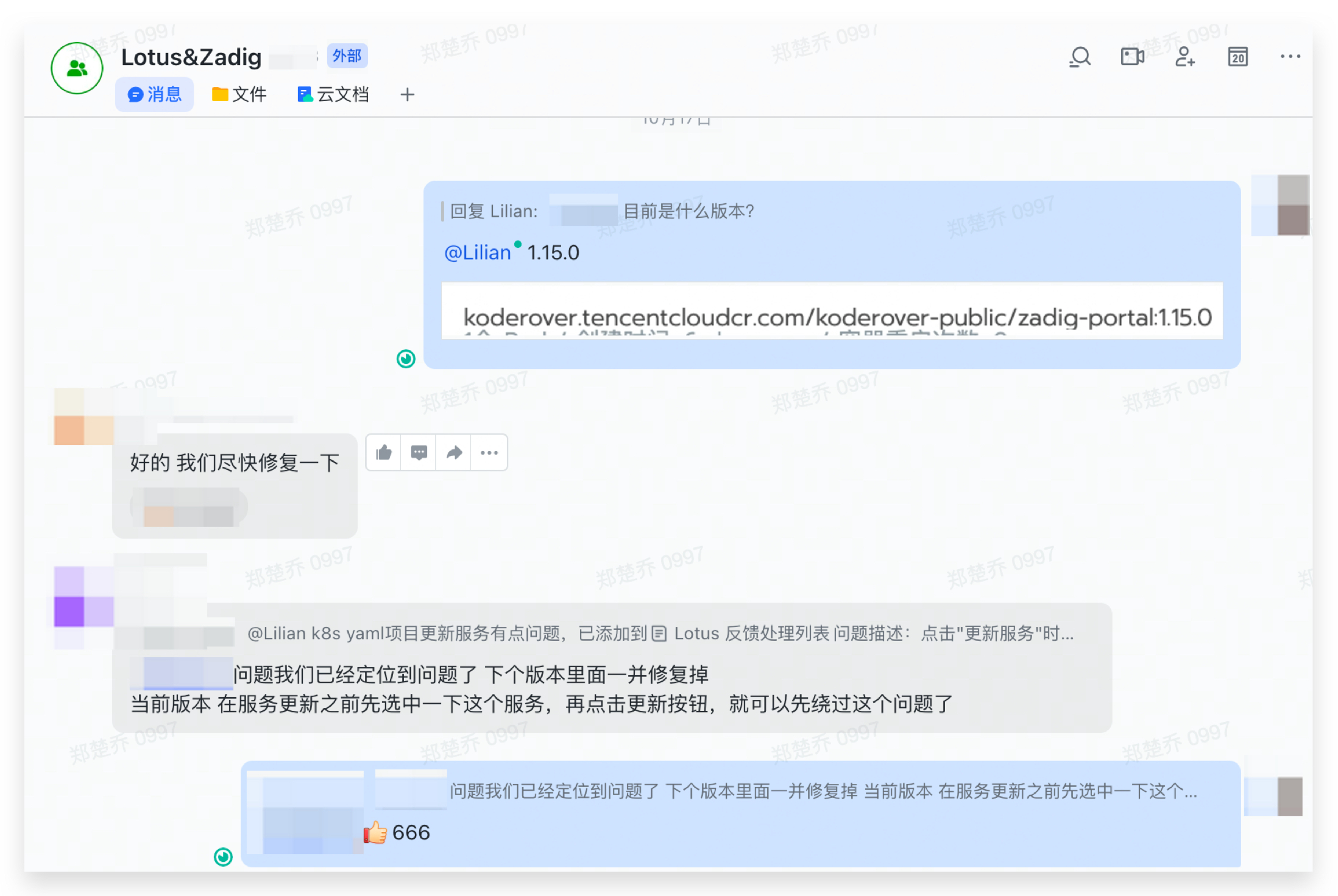 在落地的过程中,我们咨询了很多问题(如缓存如何清理、迁移错误如何处理),也提出了不少建议(如 yaml 模板不够灵活、协作模式不支持自定义工作流),Zadig 的大佬们都非常耐心细致的解决了我们的疑惑,并且在很短的时间内将合理的建议采纳并且上线。这些都说明 Zadig 的背后是一支技术过硬、有匠心精神的团队。