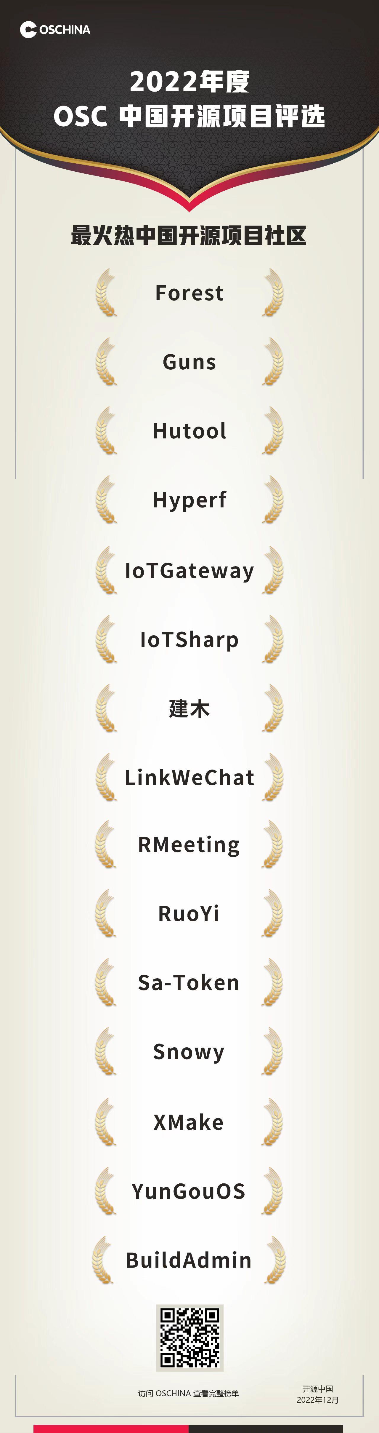 - 社区下项目 Forest, Hutool, Sa-Token 斩获 OSC [2022年度最火热中国开源项目社区]。UP UP UP!