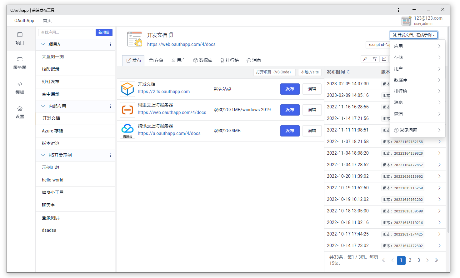 OAuthApp 是一个前端发布工具,用于快速开发前端网页项目,并发布到服务器。
