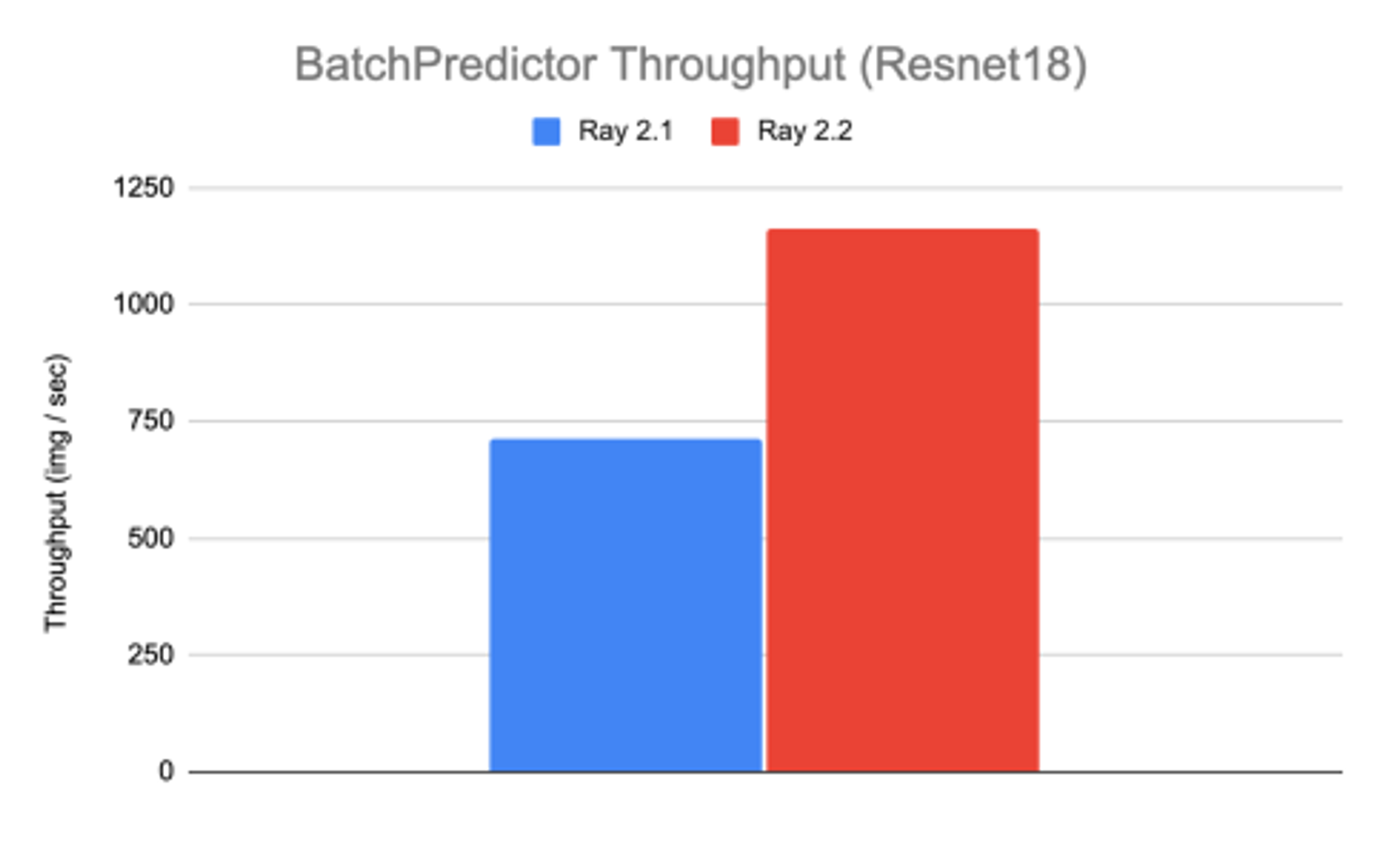 在这个版本中,Ray 团队集中精力通过避免不必要的数据转换来减少深度学习模型批量预测的延迟和内存占用。Ray 2.2 为基于图像的工作负载的批量推理提供了近 50% 的吞吐性能和 100 倍的 GPU 内存占用率的改善。