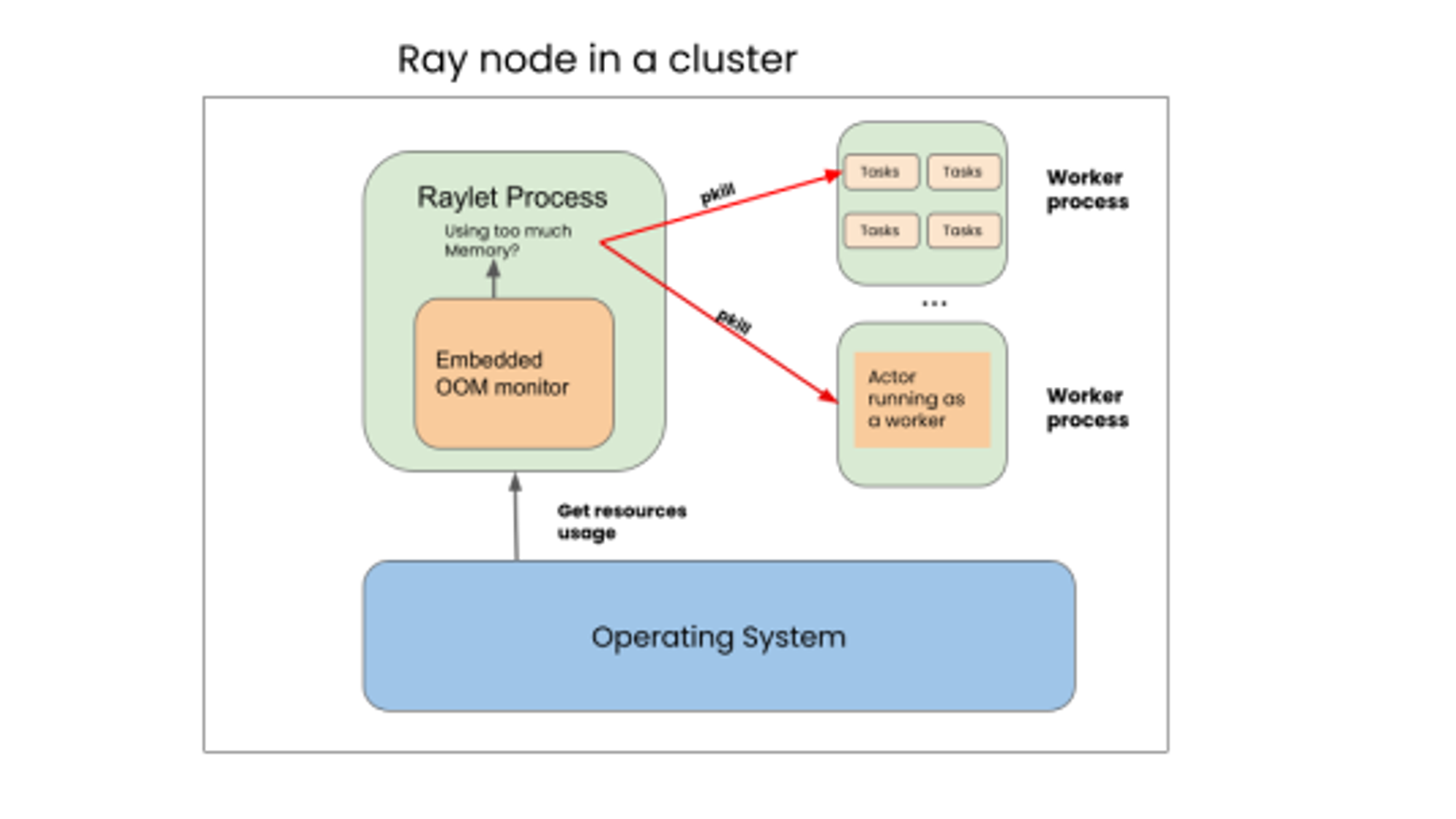 内存不足(OOM)是有害的错误,它不仅扰乱了长期运行的 Ray 应用程序,而且还降低了 Ray 集群中的其他服务。在这个版本中,默认启用了 Ray Out-Of-Memory(OOM)监控器。这个组件定期检查内存使用情况,该监控器使用内存使用统计数据来防御性地释放内存,防止 Ray 完全崩溃。