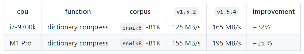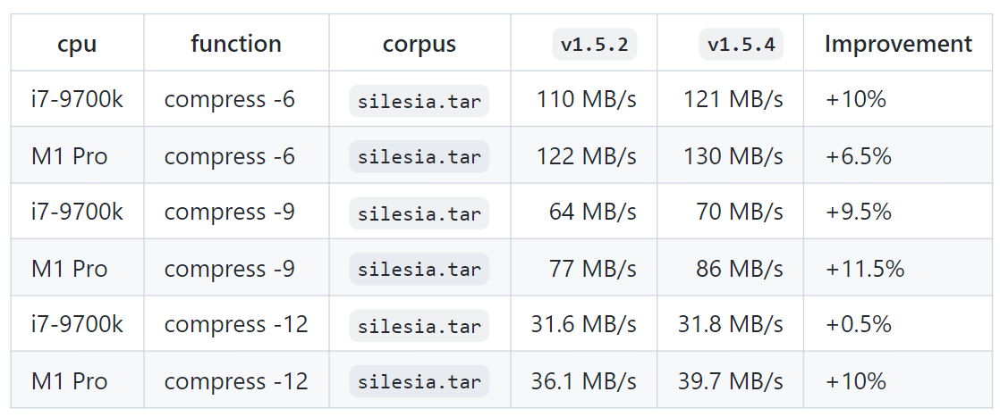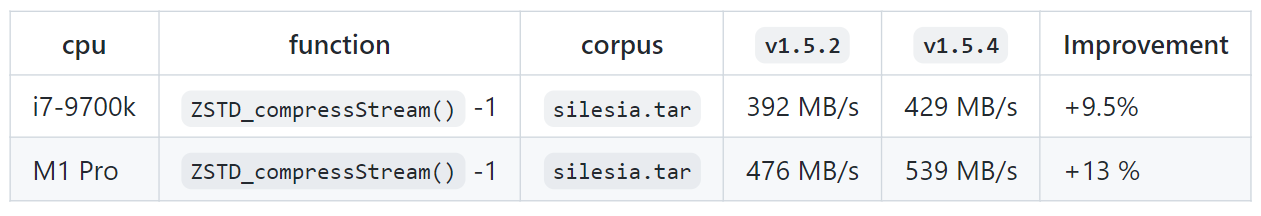 据介绍,Zstandard 1.5.4 积累了许多特定于场景的改进,这些改进以某种方式累积使很大一部分安装基础 (installed base) 受益。比如针对 ARM 优化、围绕大文件的优化工作、I/O 性能优化,以及一系列其他性能工作,这些变化使 Zstd 1.5.4 成为一个令人兴奋的版本。