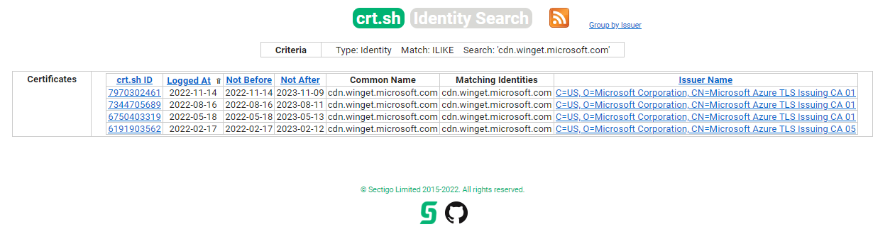 之后,GitHub 用户通过查看证书透明度日志还发现,微软在过去的一年时间里实际上已经为 WinGet 多次更新证书,最近一次还是在 2022 年 11 月。