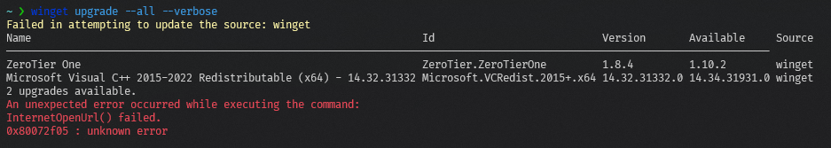 从 2 月 12 日起,不少 WinGet 用户报告,在他们尝试通过 WinGet 安装或升级应用程序时出现了无法正常使用的情况,WinGet 弹出了 "InternetOpenUrl() failed" 这样的错误提示。