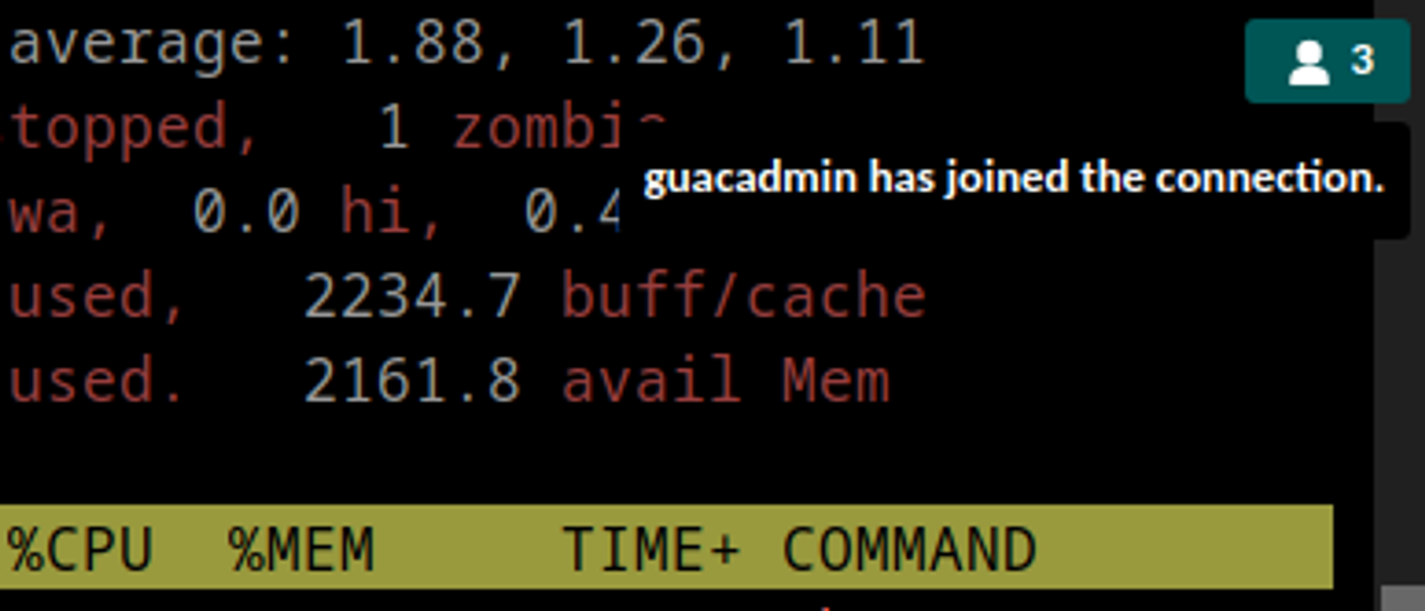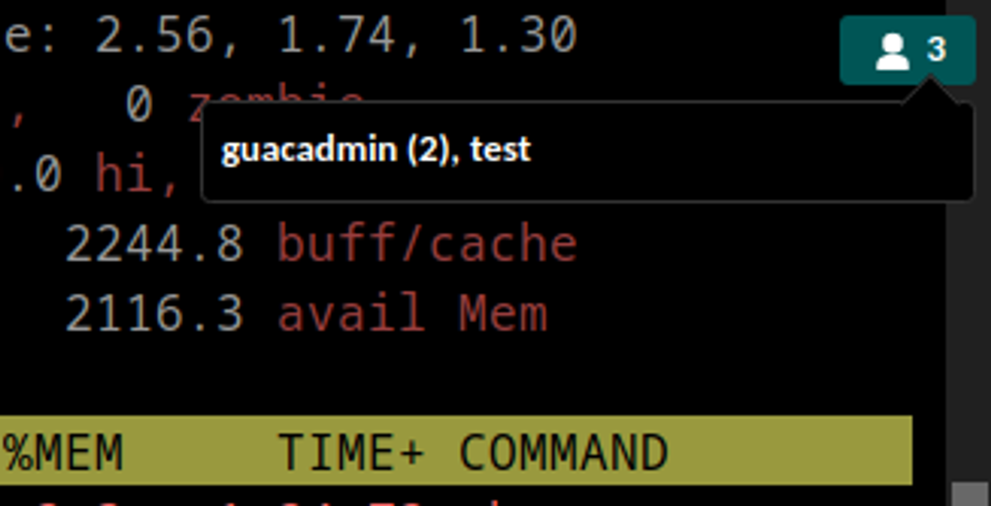 这个通知和计数器既显示由于共享链接而加入的用户,也显示在 "活动会话" 屏幕内点击连接而加入的管理员。用户可以在任何时候将鼠标悬停在计数器上,查看当前有哪些用户存在。