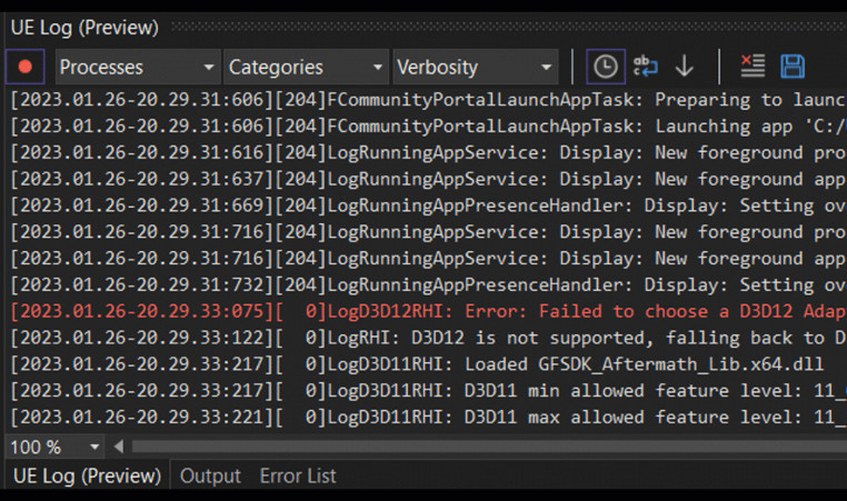 作为预览功能,现在可以在不离开 Visual Studio 的情况下查看虚幻引擎日志。