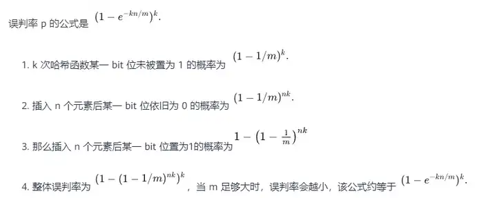 我们会预估布隆过滤器的误判率 p 以及待插入的元素个数 n 分别推导出最合适的位数组长度 m 和 哈希函数个数 k。