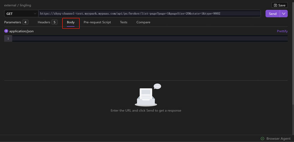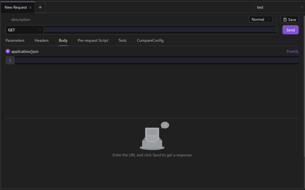 新建请求后,请求方法默认选择为 GET,GET 请求将从服务器获取信息。
