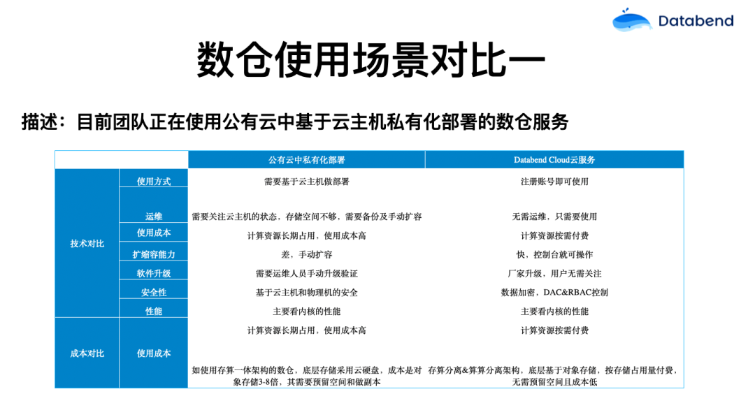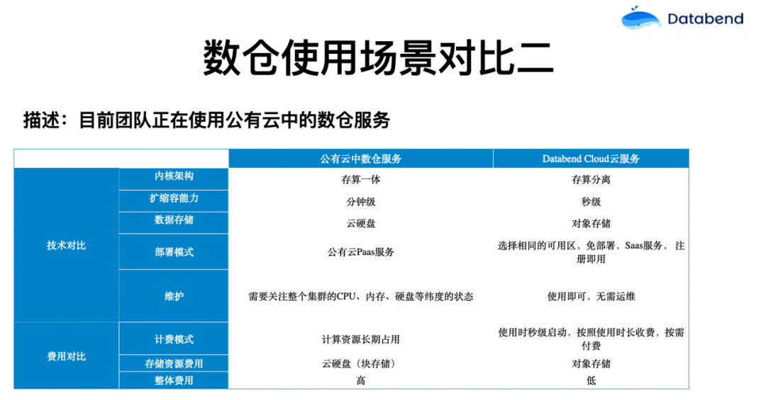 Databend Cloud 和使用公有云数仓的区别