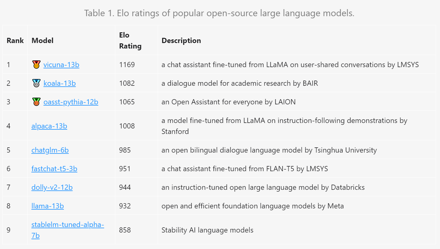 LMSYS ORG 是一个开放的研究组织,由加州大学伯克利分校的学生和教师与加州大学圣地亚哥分校和卡内基梅隆大学合作创立。Elo 评分系统统是指由匈牙利裔美国物理学家 Arpad Elo 创建的一个衡量各类对弈活动水平的评价方法,是当今对弈水平评估的公认的权威方法。被广泛用于国际象棋、围棋、足球、篮球、电子竞技等运动;Elo 评分越高,越厉害。