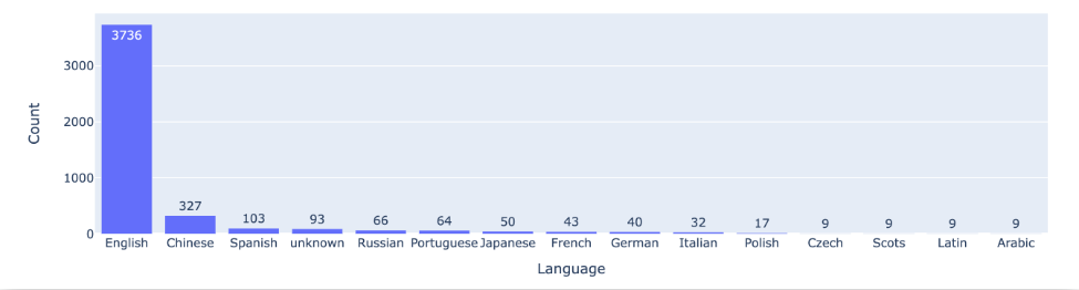 🔼 前 15 种语言的对战次数