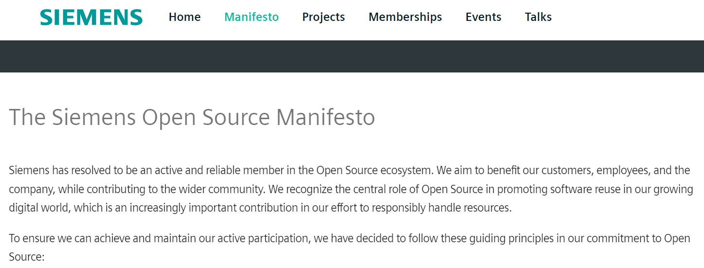 - 促进参与:西门子将推动和促进积极参与与公司项目相关的开源活动。