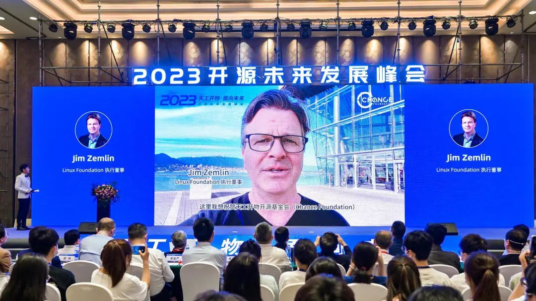 Linux 基金会执行董事 Jim Zemlin 祝贺峰会顺利召开,并表达了他对天工开物开源基金会的祝福与合作期待。