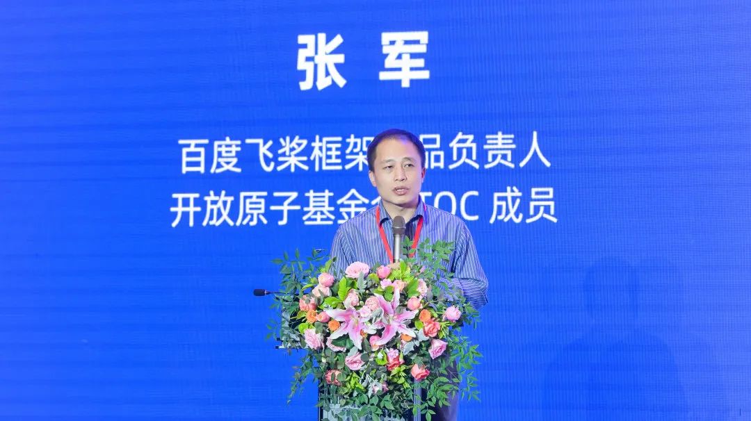 百度飞桨框架产品负责人、开放原子开源基金会 TOC 成员张军介绍了深度学习技术发展与大规模产业应用面临的挑战,他认为人工智能为数字经济提供了新动能,而深度学习平台是共性平台,支撑着 AI 工业大生产,同时他深入分享了飞桨产业级深度学习开源开放平台。