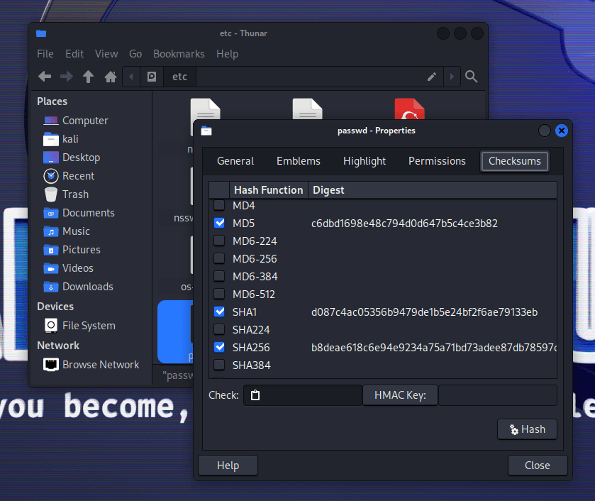 此版本为 Xfce 文件管理器预安装了一个漂亮的扩展:GtkHash,此扩展提供了快速计算校验和的选项,只需右键单击文件然后打开“校验和”选项卡即可,无需打开终端并手动输入命令。