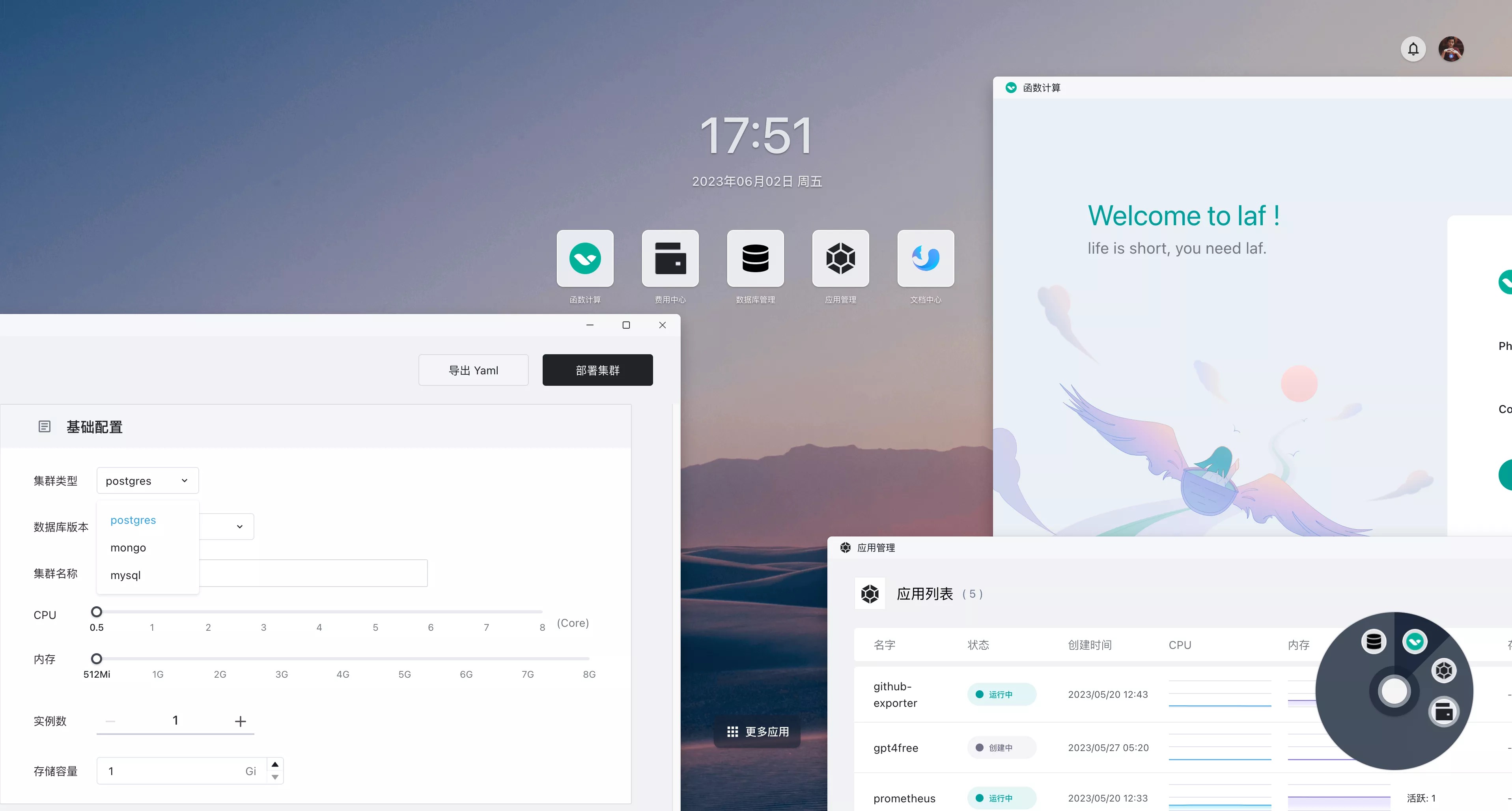 有人可能会把云操作系统理解成“Web 界面”,但其实不是,Sealos 云操作系统完全是类似于 Windows 和 macOS 桌面的那种逻辑,并不是 Web 界面。我只需要点几下鼠标,一个应用就装好了,老夫并不知道什么容器什么 K8s。