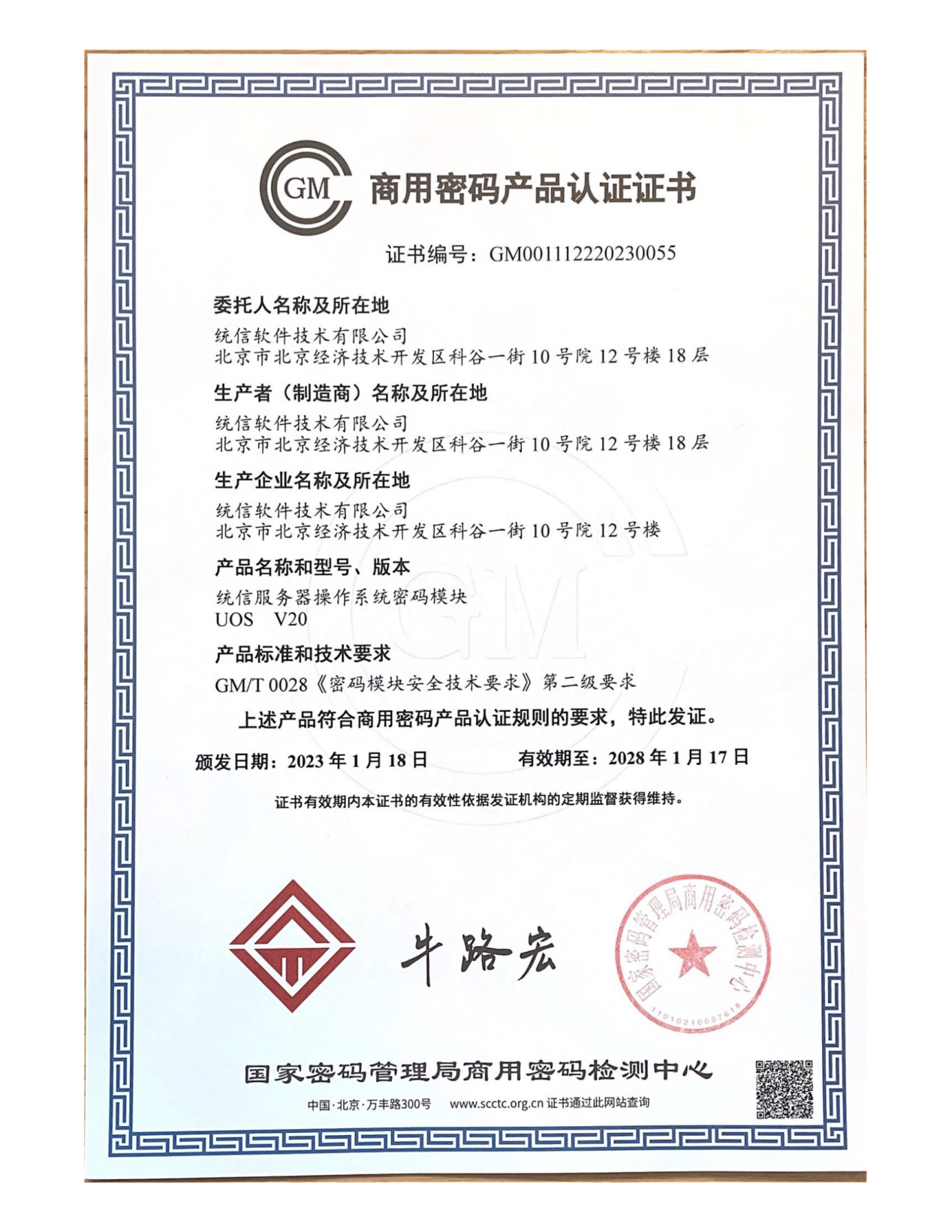 国家密码应用与安全性评估的关键标准(GB/T 39786)明确指出等保三级要求所使用的密码产品应达到二级及以上安全标准。统信服务器操作系统密码模块达到GM/T 0028《密码模块安全技术要求》第二级要求,获颁商用密码产品认证二级证书。