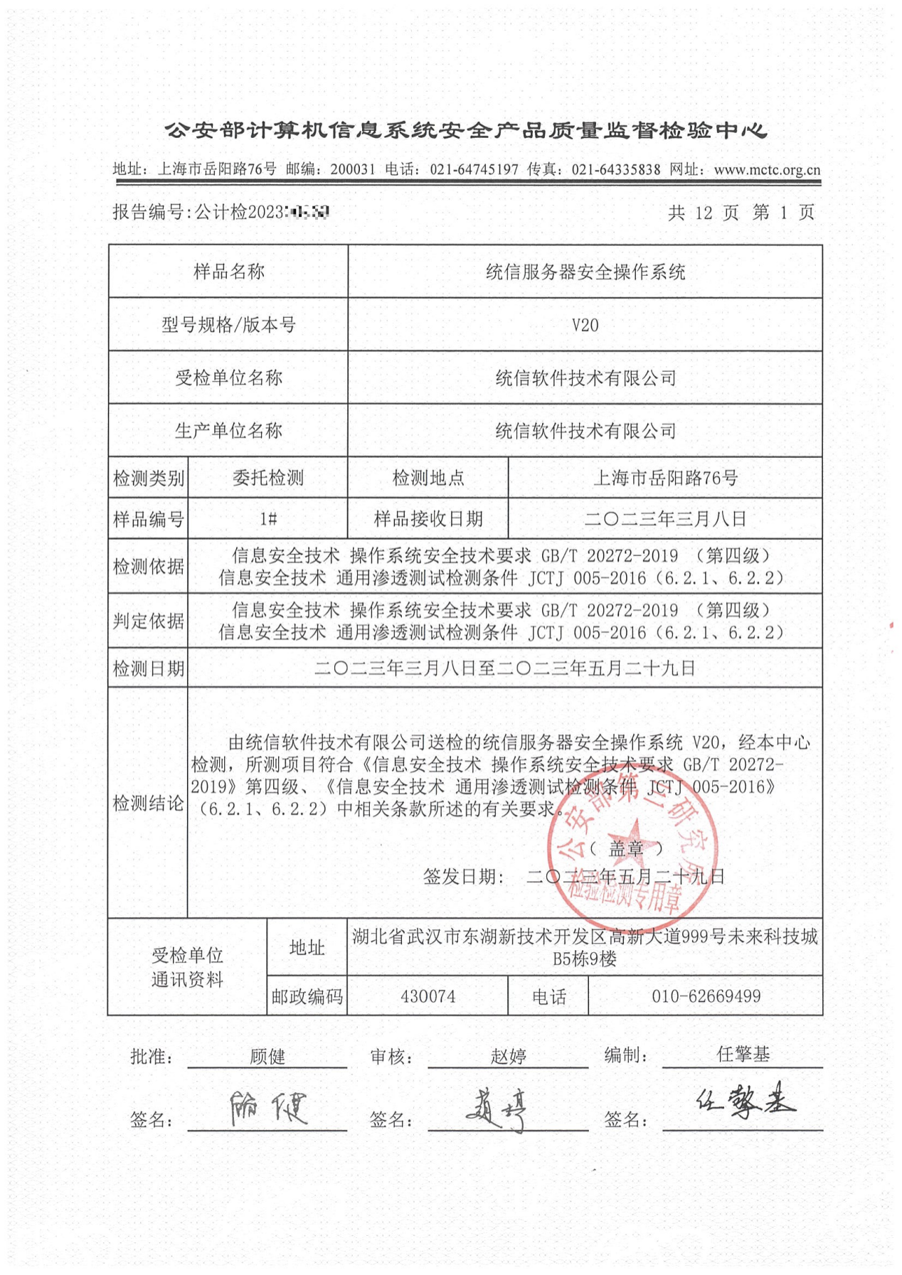 2021年,统信服务器操作系统V20通过了GB/T 20272-2019《信息安全技术 操作系统安全技术要求》第四级要求,是首个通过该认证的服务器操作系统产品。时隔两年,统信服务器操作系统V20再次通过了该认证完成续证。