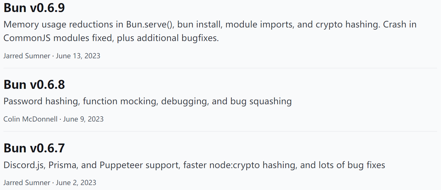 最近 Bun 的更新比较频繁,6 月才过一半就发了三个新版本。